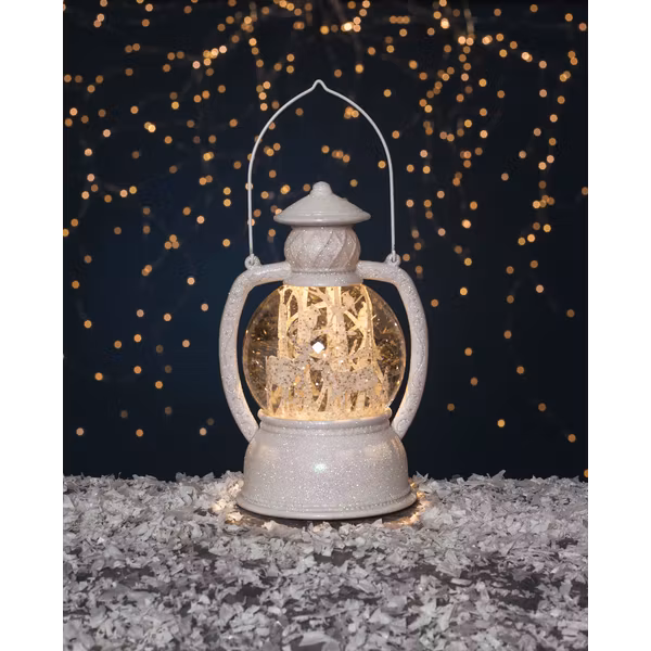 Batteridriven bordsdekoration med glittrande vätska. Inbyggd fläkt med motor ger en vacker dekoration med effekten av att det snöar inuti. Den inbyggda timern gör det lätt att ställa in när produkten ska lysa.