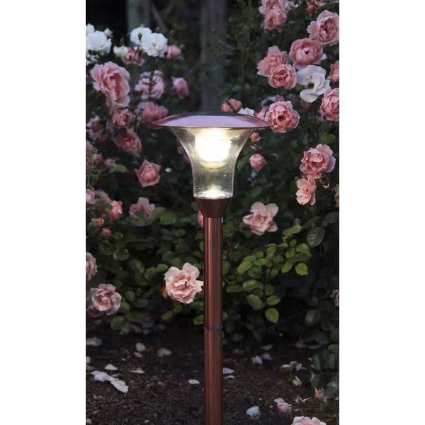 Gångljus i kopparfärg som drivs av solenergi. Gångljuset har rörelsesensor som ger 100 Lumen i 45 sekunder och går sedan ner till 10 Lumen. Passar perfekt att ha i entrén och trädgården.