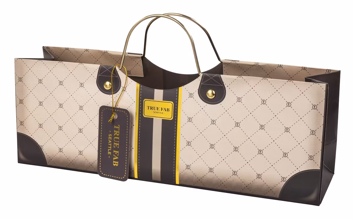 Den här lyxiga present/vinpåsen att ge bort vid speciella tillfällen. Lika uppskattad att lägga i smågott som ost och kex som en flaska vin i. Material är papper med metallhandtag. Så fin så den som får den lär spara den som en vandringspokal till nästa.