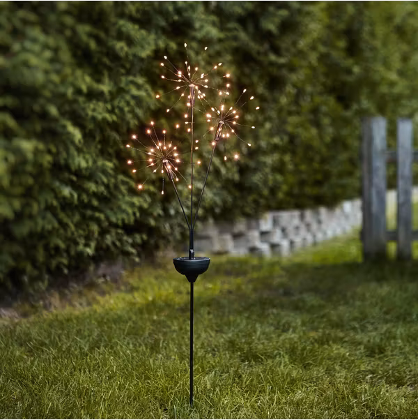 Solcellsdrivet gångljus Firework med 3 kluster som vardera har 30 varmvita dew drop LED. Riktigt dekorativ överallt i trädgården.