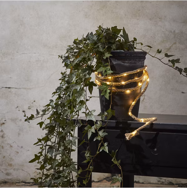 Batteridriven ljusslinga med juterep coh 40 varmvita LED-lampor. Underbar ljusslinga att dekorera med till vardags och fest. Den inbyggda timern gör det lätt att ställa in när ljusslingan ska lysa.