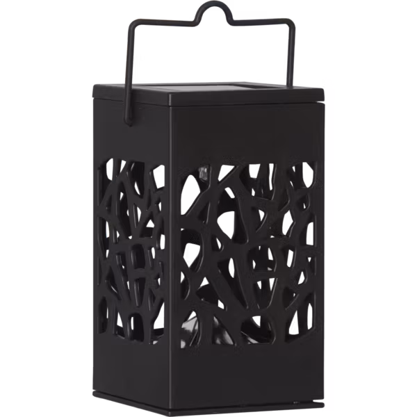 3 pack solcellsdrivna gångljus i svart plast, det utskurna mönstret ger en vacker ljuseffekt på marken.