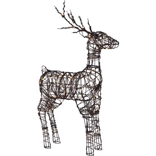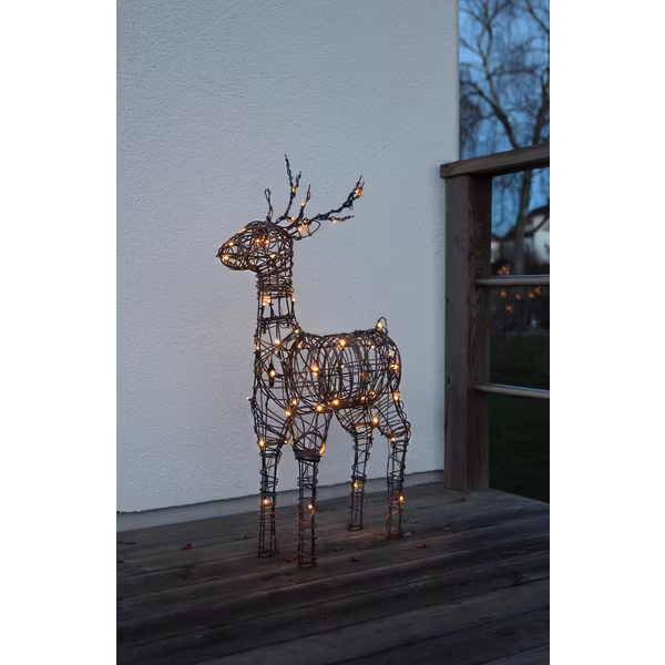 Stämningsfull dekoration för din trädgård eller uteplats. 90 cm hög brun ren med 64 LED ljuspunkter.
